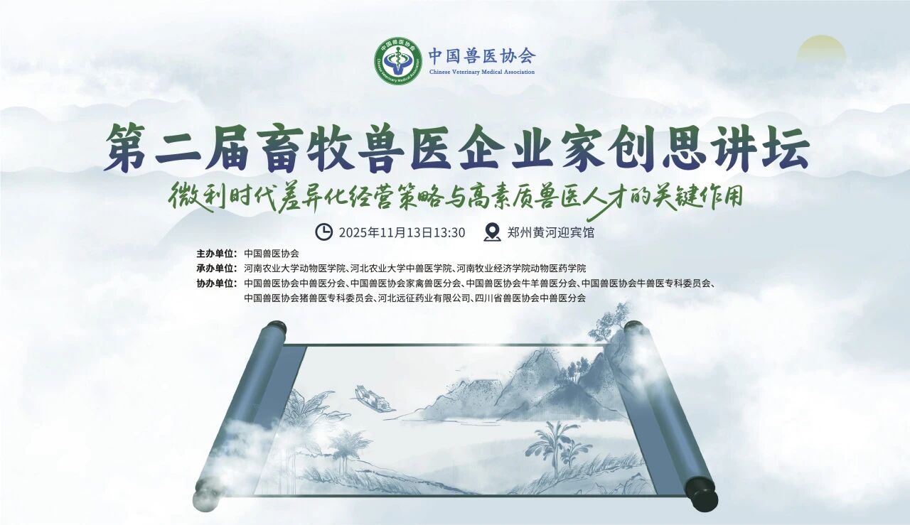 2025年11月14日下午及15日上午,由中国兽医协会主办,中国兽医协会中兽医分会承办的第三届中兽医药传承创新发展论坛中兽医药在家禽疾病防控中的作用与方案解析专场在河南省黄河迎宾馆成功举办。来自高校、科研院所、中兽药企业的专家学者及兽医行业从业者共计200余人参会。