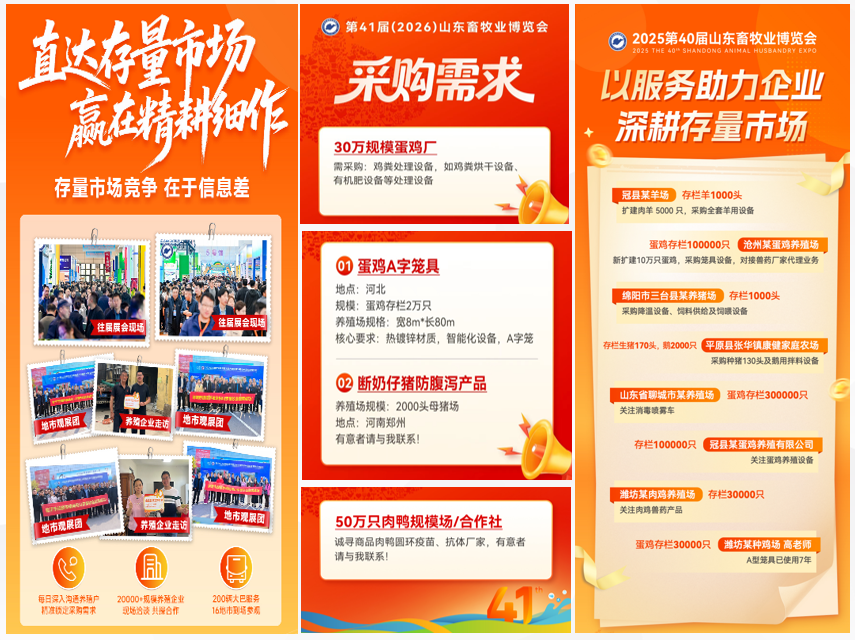 第41届(2026)山东畜牧业博览会官宣定档,将于2026年10月31日-11月1日,在山东国际会展中心盛大举办。