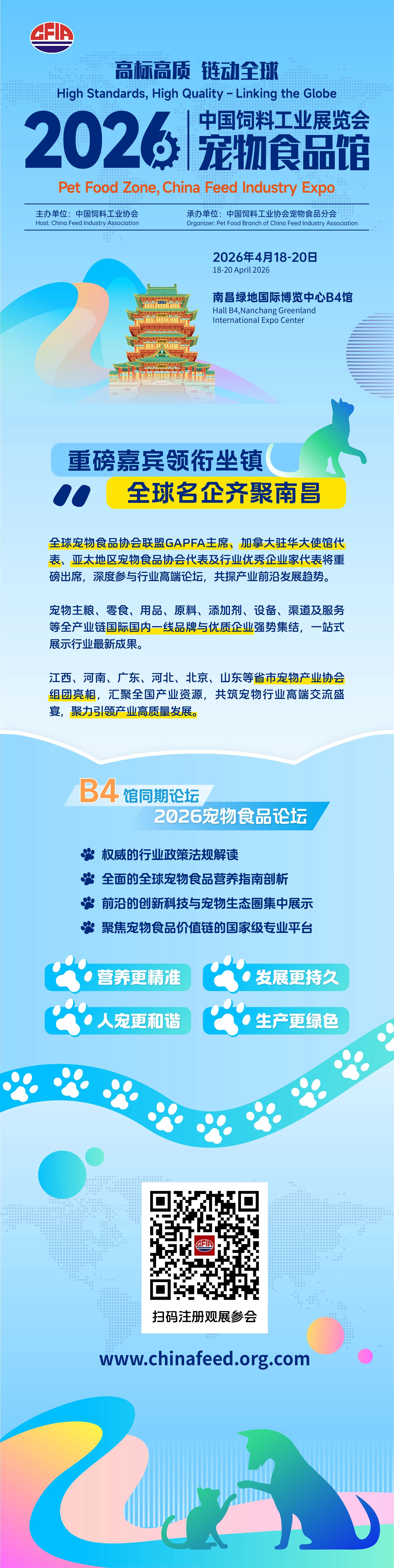 由中国饲料工业协会主办的中国饲料工业展览会,自1996年创办以来,历经三十载深耕沉淀,已发展成为国内饲料行业规模大、专业化程度高、行业影响力强的国家级专业盛会,全面覆盖大型饲料企业、饲料添加剂、原料供应、检测仪器及加工设备等行业全产业链,是行业内核心的展示交流与资源对接平台。