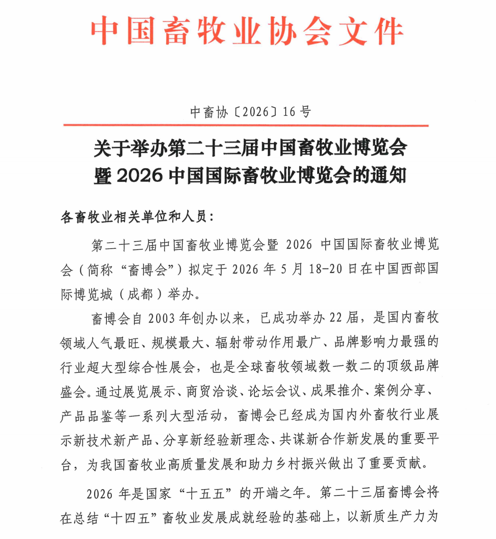 来源: 中国畜牧业博览会 2026-04-02 10:40:38 查看: 次