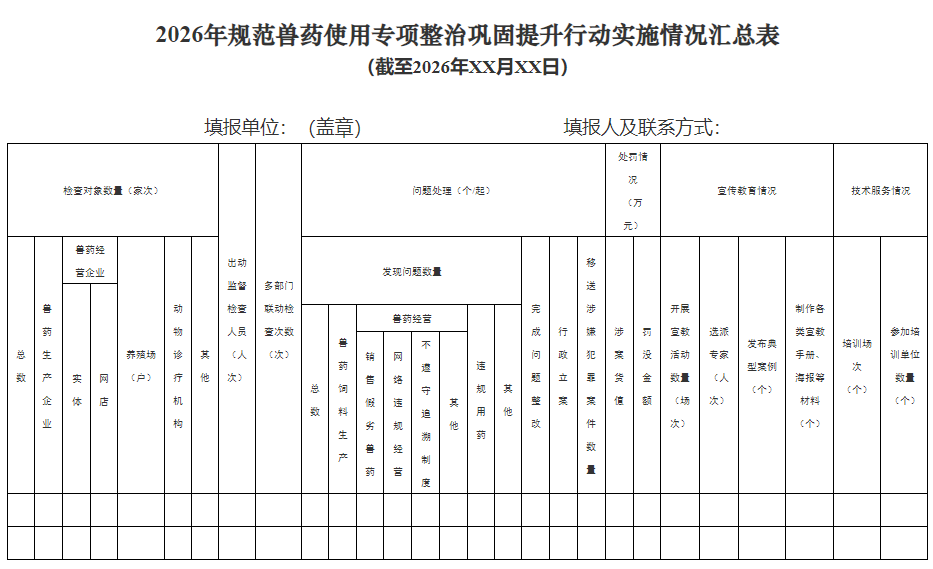 附件:2026年规范兽药使用专项整治巩固提升行动实施情况汇总表
