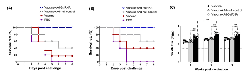 3.2.Ad-3siRNA与FMD疫苗联合在小鼠中引发早期保护和增强的中和抗体水平