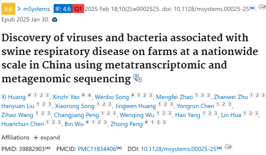 当一头猪因呼吸道疾病死亡时,背后可能是12种病毒+164种细菌的联合绞杀!2025年初,华中农业大学联合国家农业微生物实验室,在《mSystems》发布覆盖全国25省的研究,首次系统性地揭开猪呼吸道疾病的“病原江湖”,其中猪繁殖与呼吸综合征病毒(PRRSV)仍然是流行最广、丰度最高的病毒病原体。这项研究不仅填补了全国尺度上猪呼吸道病原体谱的空白,更为疫苗研发、疾病防控提供了关键数据支撑。