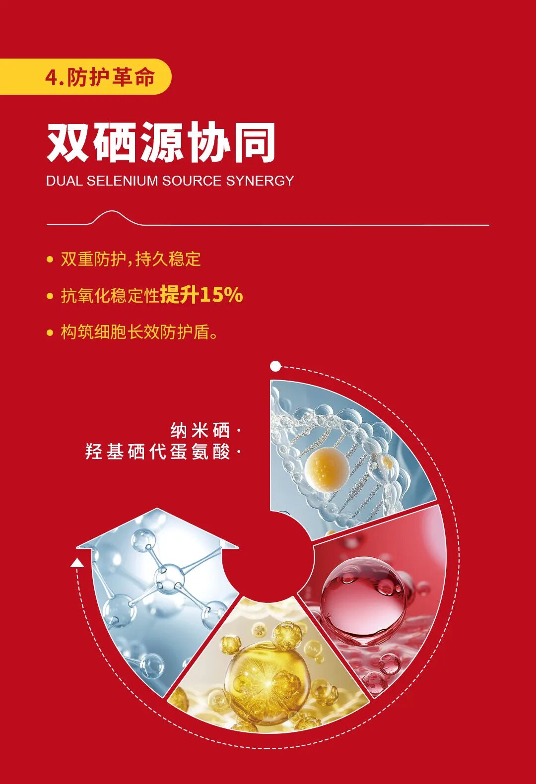 独家采用纳米级摩力硒与羟基硒代蛋氨酸的双重硒源组合,构筑长效保护防线。二者协同作用,不仅在短期内快速提升机体抗氧化水平,更能实现硒元素的持续释放,将抗氧化稳定性整体提升15%,有效减缓细胞氧化损伤,延长猪只健康活力的持续时间。