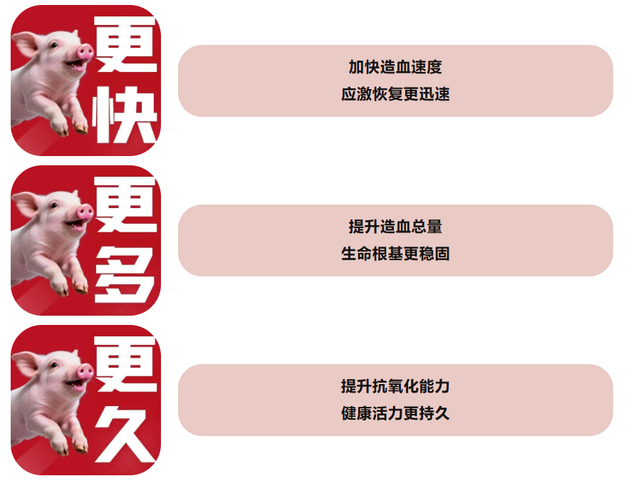 ②系统功能保障:通过“造血-活血-养血”三大机制,系统性地保障了母猪繁殖系统(子宫、卵巢、乳腺)的血氧供应与功能健康,为胎儿发育和泌乳创造了最优的母体内部环境。