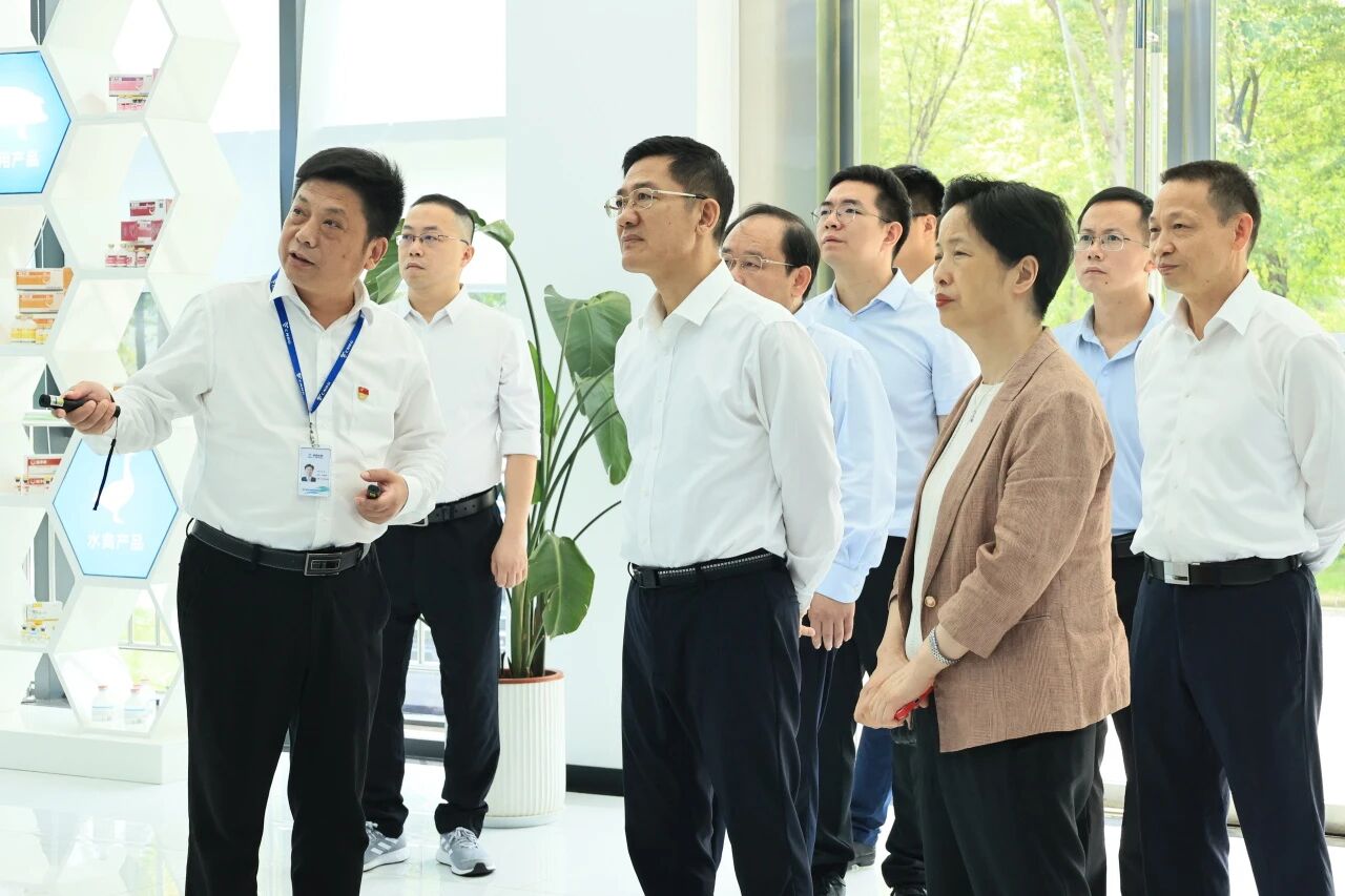 吴扬向时任农业农村部科教司二级巡视员窦鹏辉介绍国产自研新型疫苗佐剂