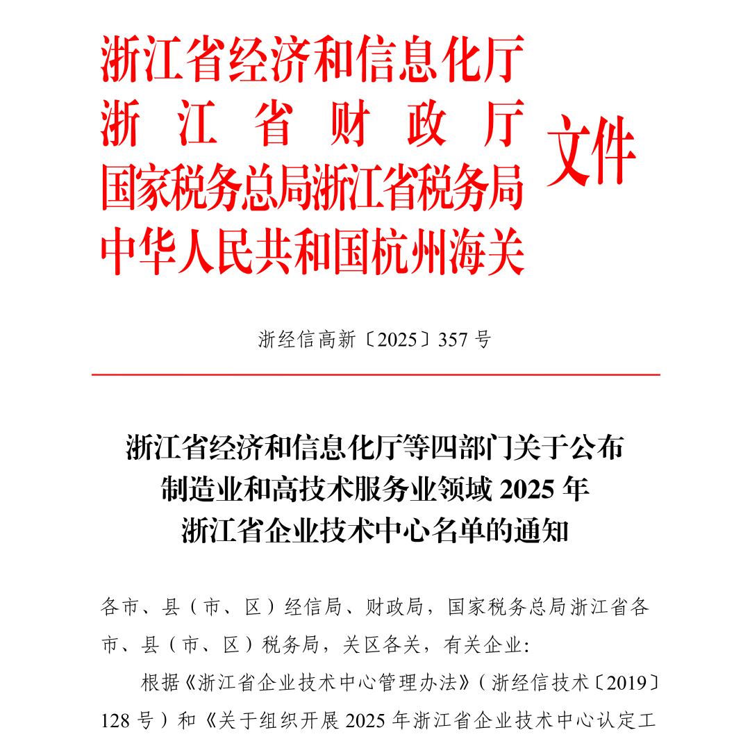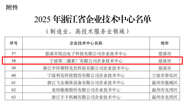 12月23日,浙江省经济和信息化厅、浙江省财政厅、国家税务总局浙江省税务局、中华人民共和国杭州海关联合发布《浙江省经济和信息化厅等四部门关于公布制造业和高技术服务业领域2025年浙江省企业技术中心名单的通知》。宁波第二激素厂有限公司企业技术中心凭借突出的综合实力与持续创新,荣膺“2025年浙江省企业技术中心”。