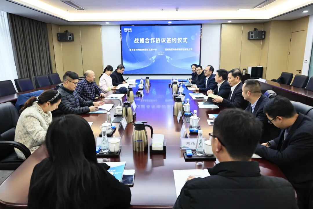 2月6日,湖北省动物疫病预防控制中心(以下简称“省疫控中心”)主任谢军、副主任黄涛一行赴国药动保签署腹泻类生物制品研发战略合作协议,双方携手破解动物疫病防控难题,助力畜牧业高质量发展。