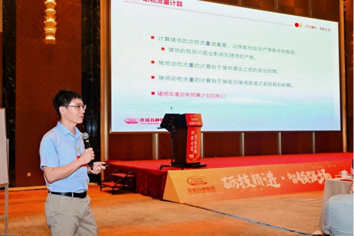 生产技术与管理革新板块以精细化操作为核心。永诚育种集团战略合作部总监、华中农业大学博士李建军设计配怀舍高效管理体系,重点介绍了妊娠蛇形管理法、AHA效应催情技术(断奶后4-7天暂停诱情)以及五步查情法三大创新管理方案;他还建立生产计划经济学模型,揭示NPD与效益的量化关系——每增加10天,1200头规模场损失约65万元,并针对不同规模猪场提供4种繁育体系适配方案。
