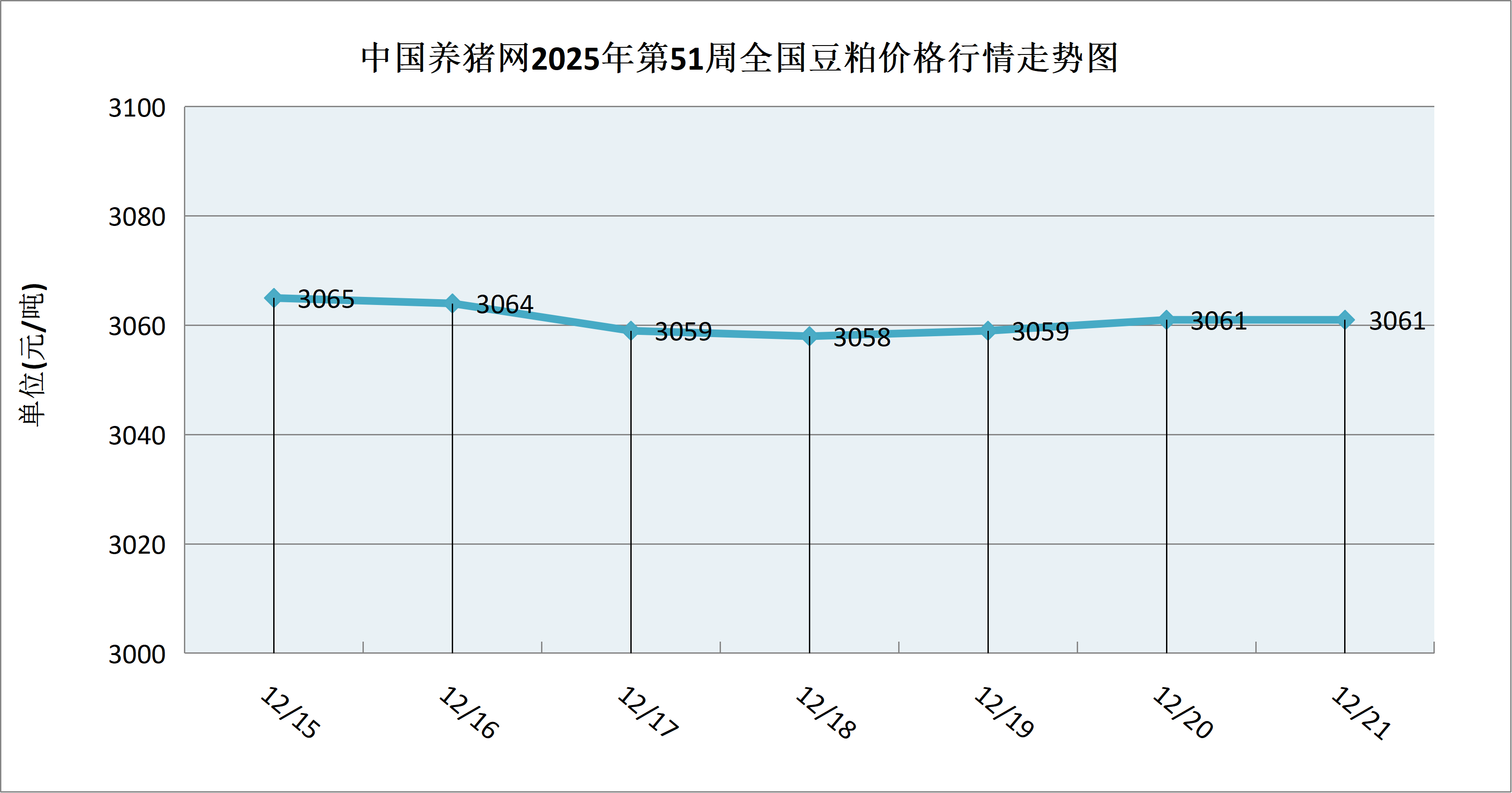 中国养猪网2025年第51周国内豆粕走势图