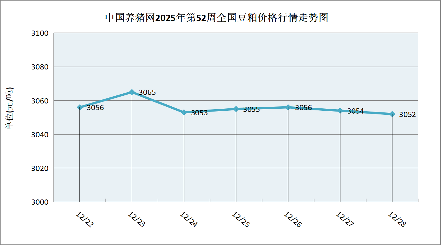 中国养猪网2025年第52周国内豆粕走势图