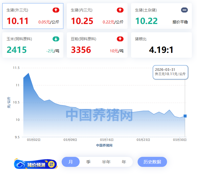 2026年04月01日-中国养猪网玄田算法预测明日猪价