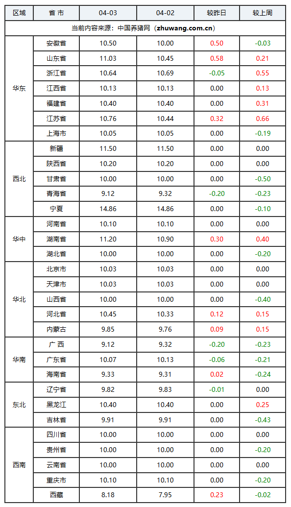 2026年04月03日(星期五),据猪价系统数据监测: