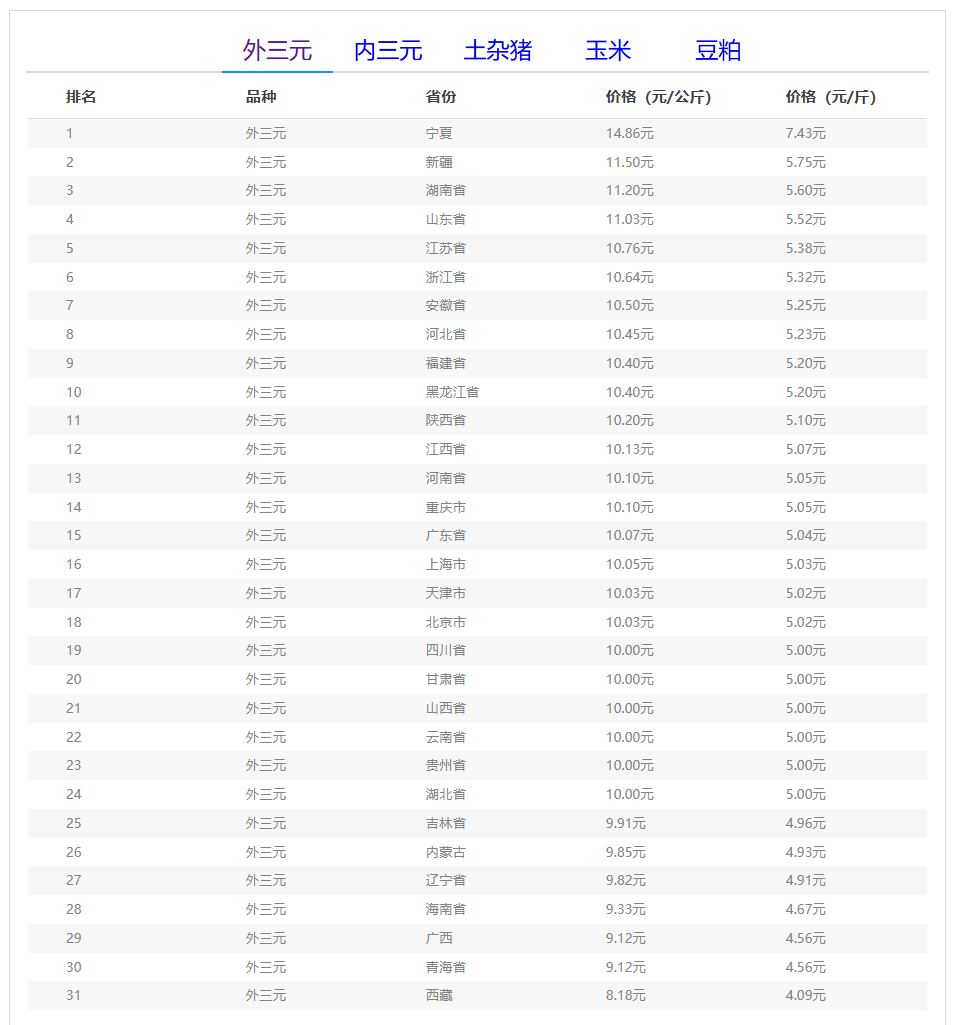 (备注:本文生猪价格及猪价特指活猪价格,并非是消费市场的猪肉价格,外三元、内三元、土杂猪则为生猪品种。)