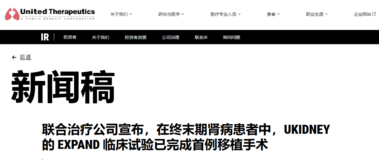 当地时间11月3日,美国生物技术企业联合治疗公司(United Therapeutics)公告称,该公司在纽约大学朗格尼医学中心(NYU Langone Health)完成了将基因编辑猪肾移植至人体的首例临床试验手术,标志着这一手术的规模化临床试验正式启动。