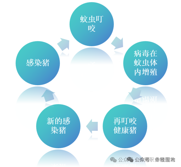 盖塔病毒主要通过蚊虫叮咬传播,形成“猪-蚊-猪”的传播循环,其传播媒介包括库蚊(Culex spp)、伊蚊(Aedes spp.)等。猪群在GETV传播中扮演着“放大器”的角色,感染猪会出现高水平的病毒血症,使病毒更易于被蚊子摄取并传播给其他动物。盖塔病毒的宿主范围广泛,已知可感染高达19种动物,马和猪是其主要宿主。血清学调查还证实部分人群中存在GETV抗体阳性,虽然目前人类感染GETV的具体情况还需进一步研究,但这也提醒我们要注意人与动物之间的潜在传播风险。