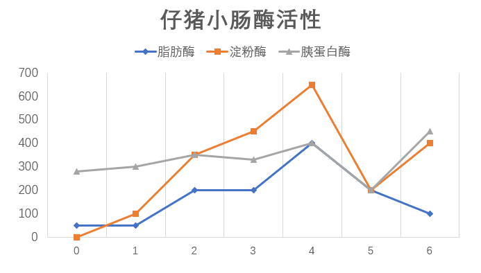 仔猪断奶后消化道线体发育尚未完全完善,脂肪酶、蛋白酶、淀粉酶等消化酶分泌较少。同时胃底腺不发达,胃酸分泌少,导致胃内pH值过高(pH只≥4)胃蛋白酶原不能完全激活,造成胃蛋白酶活性很低,不能充分消化饲料中的植物蛋白,造成消化不良,破坏小肠绒毛,导致仔猪腹泻。