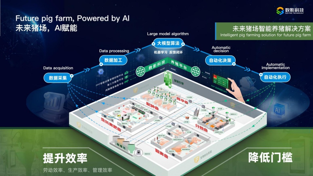 为将技术优势转化为可落地、可推广的产业实践,数影科技通过“五大精准”(精准防疫、精准决策、精准营养、精准环控、精准育种)和“八大场景”构建起全链路解决方案。