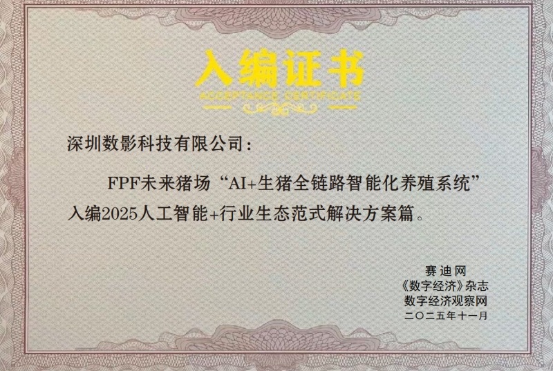 近日,数影科技自主研发的“FPF未来猪场:AI+生猪全链路智能化养殖系统”成功入选由工业和信息化部旗下赛迪网等机构联合发布的《“人工智能+”行业生态范式案例集》;同时,作为关键企业,数影科技以核心企业入选赛迪网《“AI中国”生态图谱(2025)》。