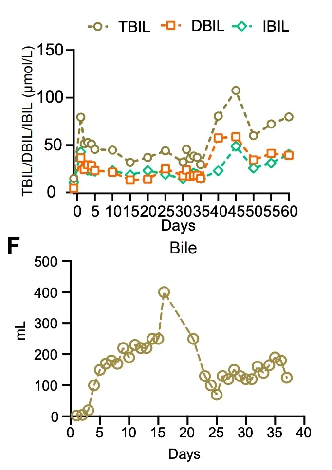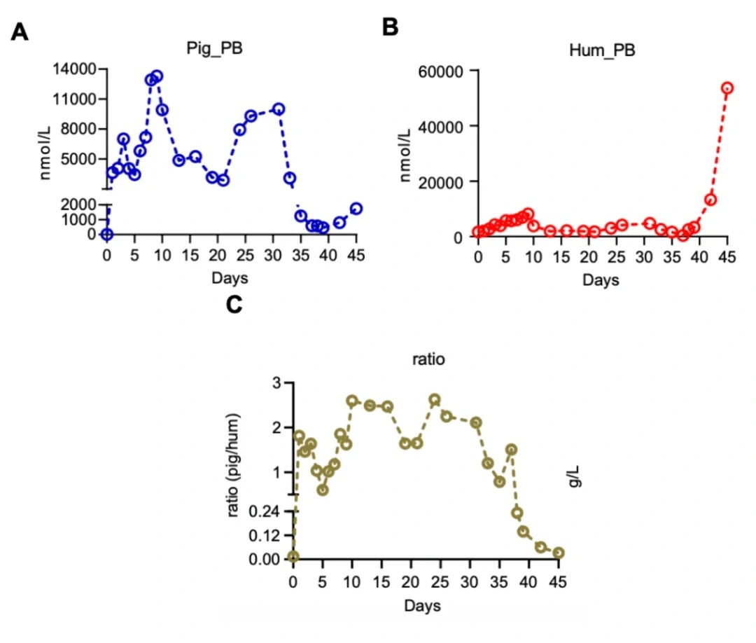 移植后第1天,血清中猪与人的初级胆汁酸比率从0.014急剧增加到1.811,表明猪移植物对胆汁酸合成进行了有效补偿。