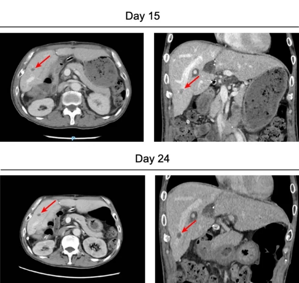 考虑到异种移植肝存在持续补体激活和内皮损伤的风险,治疗团队决定紧急进行异种移植肝切除术,于术后第38天实施。异种移植物移除后,患者的整体情况保持稳定。
