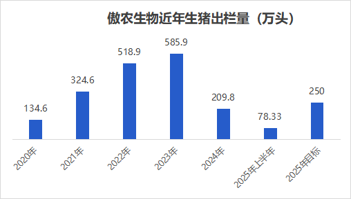 年初,公司提出2025年计划出栏生猪250万头,较2024年实际出栏量增长约19%。若这一目标实现,或将标志着傲农生物重回增长轨道。不过,对比其2023年曾达到的585.9万头出栏量,当前规模仍处于恢复阶段(2022年出栏量也曾达519万头,位列上市猪企第五)。