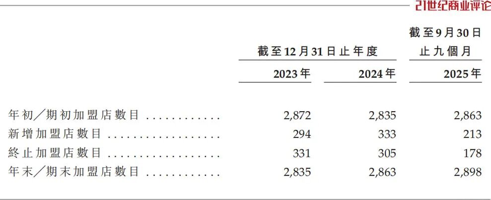 招股书显示,门店整体汰换率较高;2025年1-9月,新增加盟店213家门店,同时关闭178家。