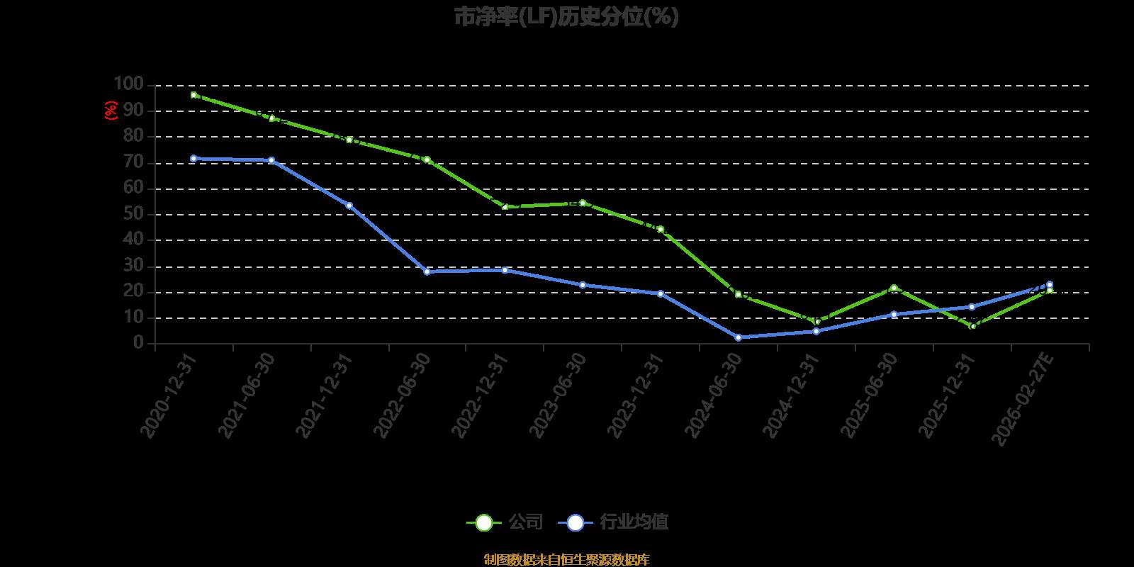 市盈率、市净率为负时,不显示当期分位数,会导致折线图中断。