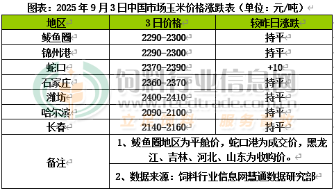 国内主产区新玉米将陆续上市,贸易商观望心态逐渐转强,饲料企业以消化小麦和玉米库存为主,深加工企业也保持随采随用策略,现货价格以弱势调整为主。产港倒挂导致贸易商集港意愿偏低,北方港口晨间集港量不足0.3万吨,在港作业船只3艘4万吨。玉米去库存化提升,供应端压力有所缓解。南方港口进口谷物陆续到货,到货成本高企,贸易商报价心态继续增强,终端饲企整体仍以刚需补库为主,随买随用。国内玉米现货价格基本稳定,局部小幅波动。东北产区随着贸易粮库存迅速下降,贸易商出货紧迫性降低,贸易商外发为主,陈粮供应也逐渐进入收尾阶段。用粮企业备库较充足,大型企业安全库存可维持使用至10月初,多家加工企业控制收购量,收购价大体稳定,个别企业收购价持续下滑。华北黄淮产区基层余粮减少,贸易库存也不断消耗,随着春玉米上量增加,东北货源不断补充供应,市场流通量小幅增多,饲料企业采购维持谨慎,企业观望心理增强,深加工企业随采随用,收购价格继续窄幅调整。