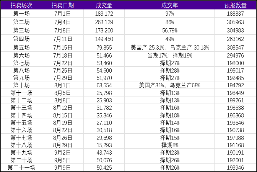 小结:预期供应阶段性收紧逻辑,被7月拍卖重启带来的供应增量打破,期货价格出现大幅调整。
