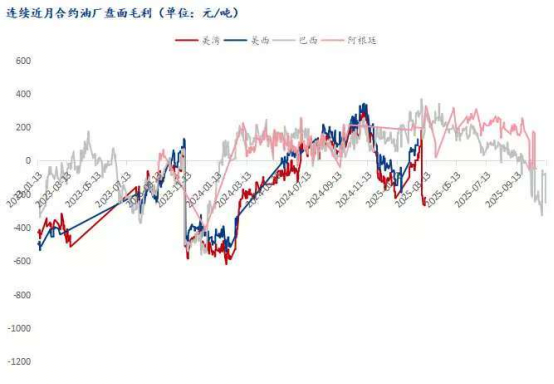 本次USDA报告亮点有限,随着美豆收获及出口进入尾声,市场焦点逐渐转向南美新作播种进展。截至最新数据,巴西2025/26年度大豆播种进度达58.4%,高于前一周的47.1%,但低于去年同期的66.1%,接近五年均值57%。阿根廷受墒情影响,播种进度也慢于去年同期。预计未来一周降雨增多,土壤湿度改善将有利于作物生长。目前尚未出现极端天气对产量造成实质性威胁,南美大豆2025/26年度丰产预期依然强烈。出口方面,巴西10月大豆出口量为672.78万吨,环比下降8%,但同比增加43%,连续第四个月刷新同期历史纪录。受产量创新高及中国需求强劲推动,巴西全国谷物出口商协会(ANEC)预计11月大豆出口量将达377.2万吨,同比激增61.3%。