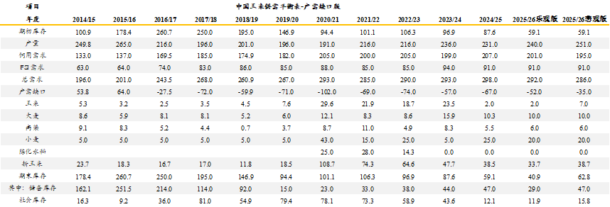 中期即站在作物年度的角度上,跟上一年度相比,当前年度国内玉米供需大概率趋于改善,其中供应端,由于东北产区玉米单产上升,市场预计全国玉米产量增加接近2000万吨,而由于新作上市以来玉米现货价格持续上涨,过去两年的调节性储备未能启动,甚至还通过中储粮和地方释放部分储备供应;在需求端,深加工需求或难有增加,而由于畜禽养殖在2025年特别是四季度产能去化,接下来特别是2026年2季度和3季度玉米饲用需求有望出现较大幅度下滑。