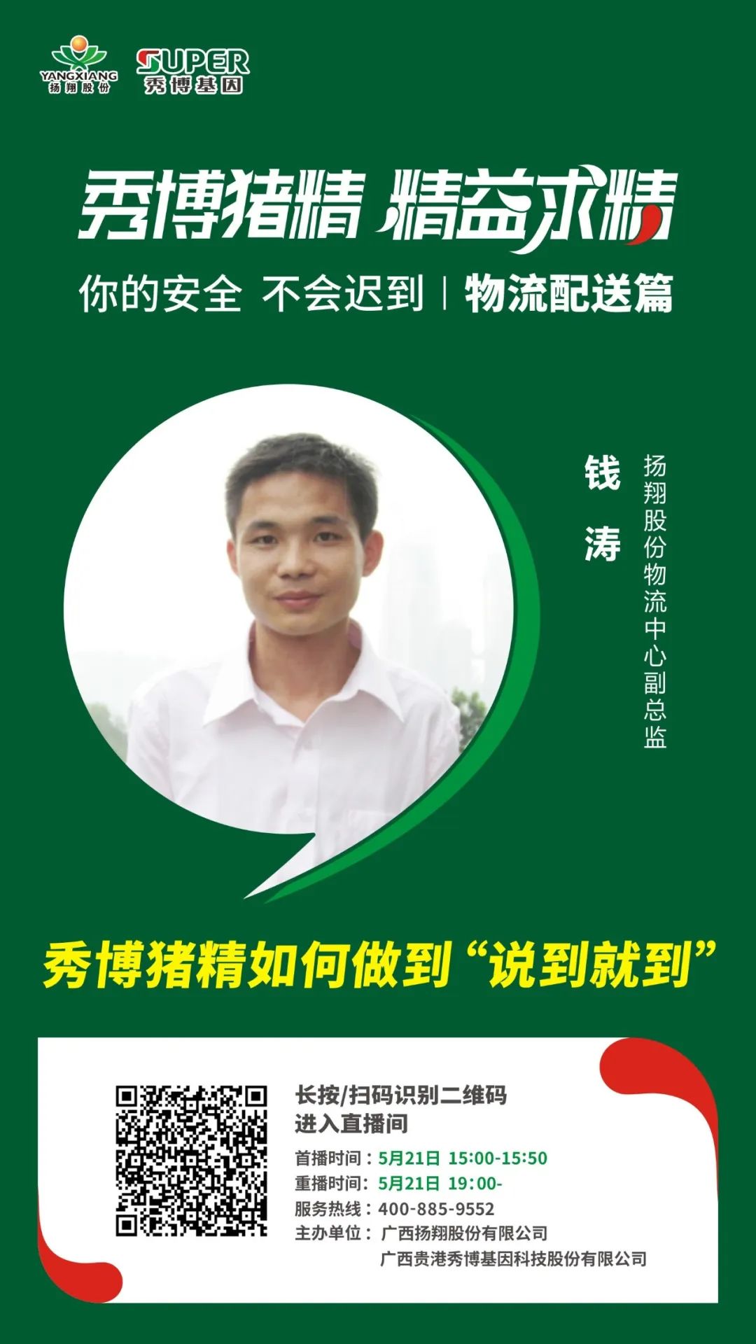 5月21日“秀博猪精云课堂”,秀博将以亚计山公猪站猪精配送为例,为大家做实地的展示和讲解,非瘟期间,您所担心的配送安全问题,都能够在本期课堂中找到答案: