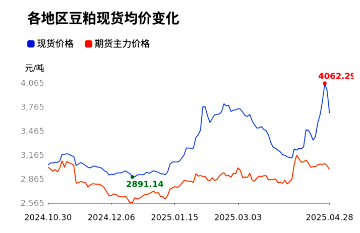 (4月28日,豆粕最新价格4062.29元/吨)