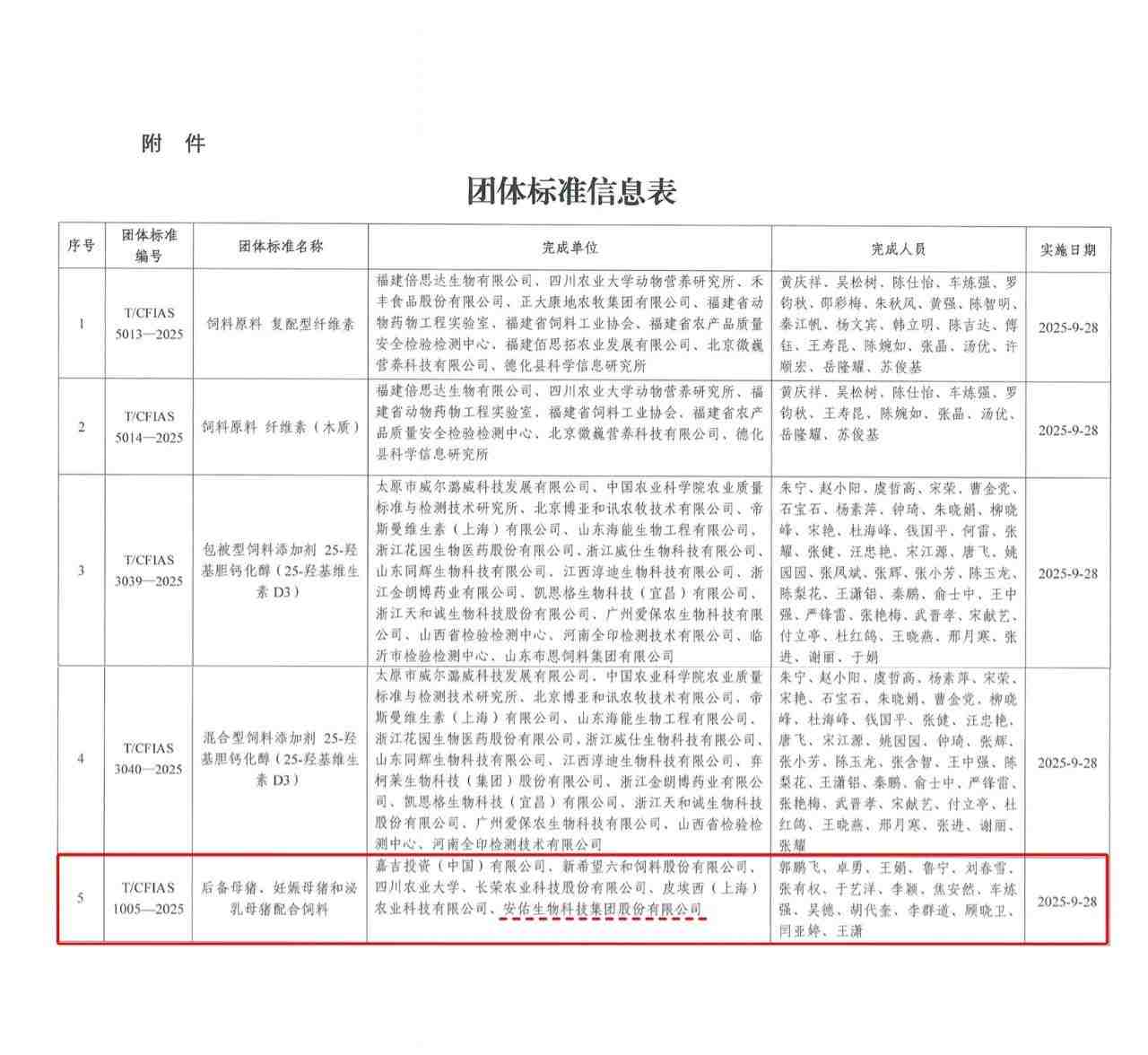 近日,中国饲料工业协会正式发布《后备母猪、妊娠母猪和泌乳母猪配合饲料》团体标准(T/CFIAS1005-2025),该标准由安佑生物科技集团股份有限公司(下称“安佑集团”)联合四川农业大学及其他四家行业知名企业共同制定,已于2025年9月28日起实施!