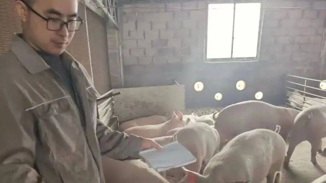 他弯着腰,在栏杆之间灵活地穿行,时而托起母猪的肚子轻轻按压,时而掏出随身携带的小本子,认真地记录下各种数据和观察结果。这样专注的精神,让他在岗位上进步神速,很快便能独立处理母猪分娩过程中的各种突发情况,为母猪和仔猪的健康保驾护航。他的专业与细心,获得了领导、同事们的高度评价。