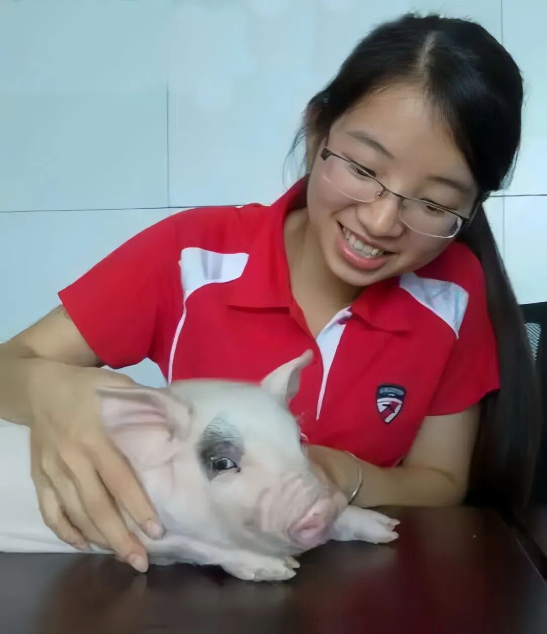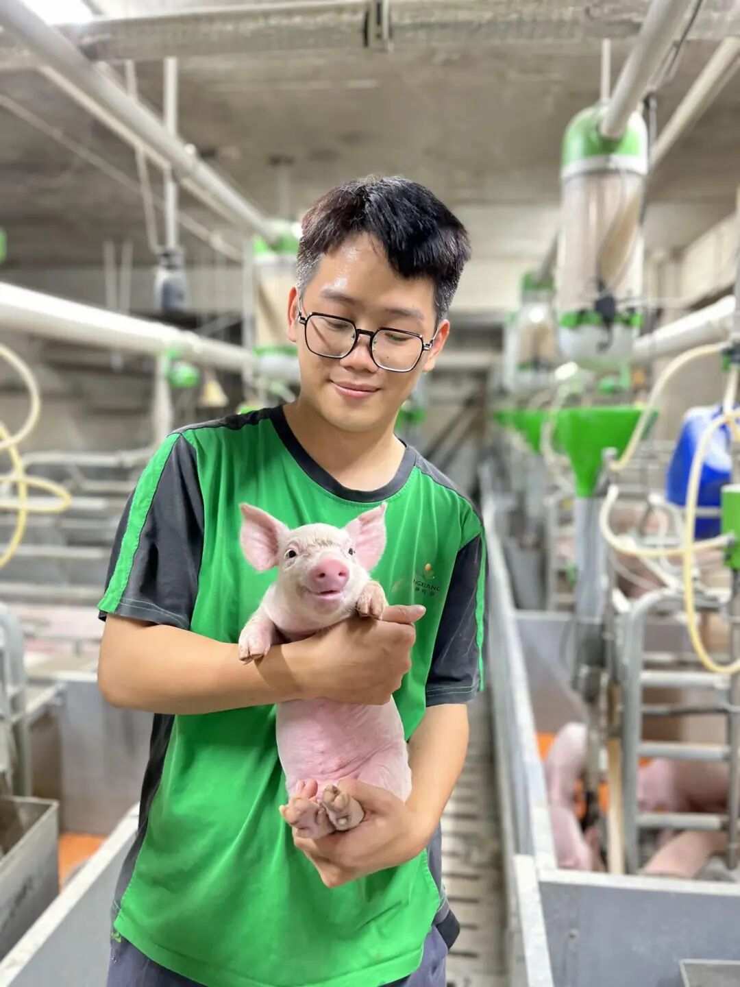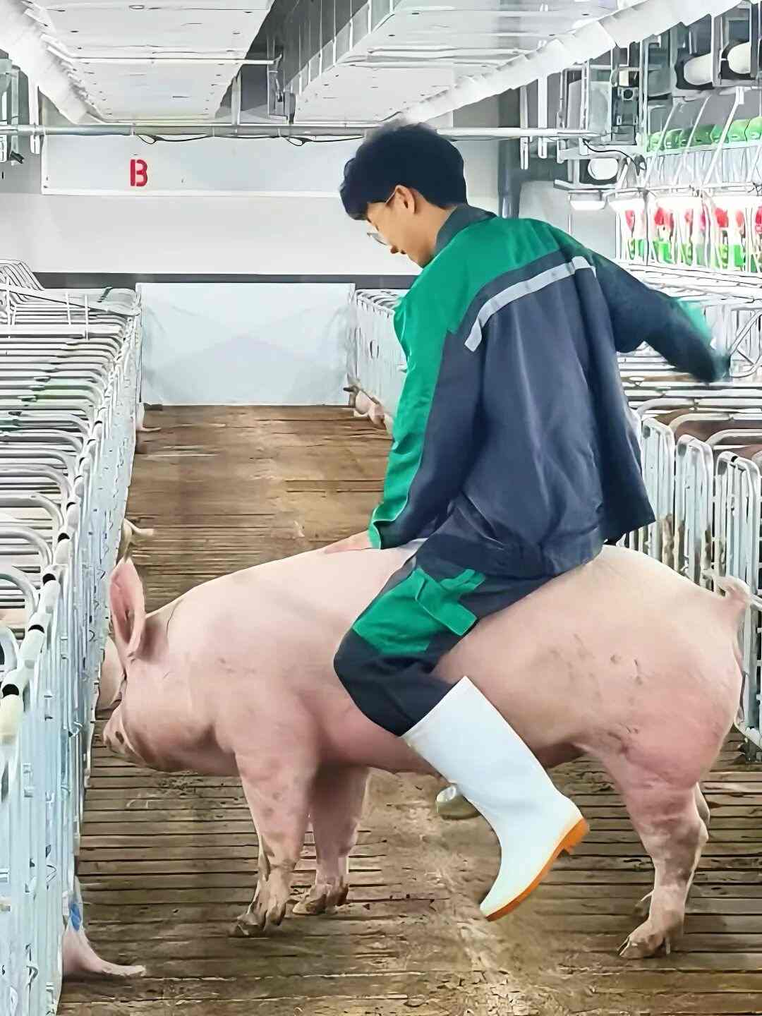 描述:这张照片里,“我在智能猪场直播讲解饲喂系统时,怀里的小猪突然咧嘴笑了。评论区瞬间沸腾:‘猪都幸福了!’——那一刻,我特别骄傲。”