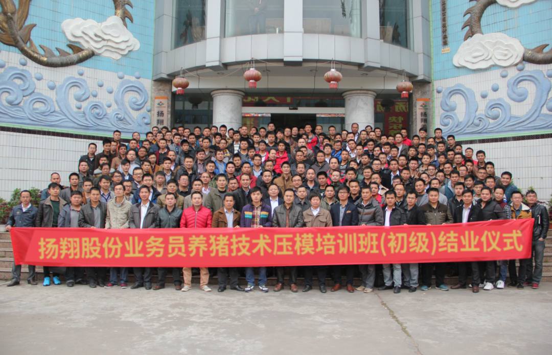描述:扬翔总部2014年12月6日业务员养猪技术压模培训班(初级)结业仪式,养猪业务的针对性技能培训,培养了一批批优秀的技能型人才,为公司养猪业发展奠定了夯实的基础。