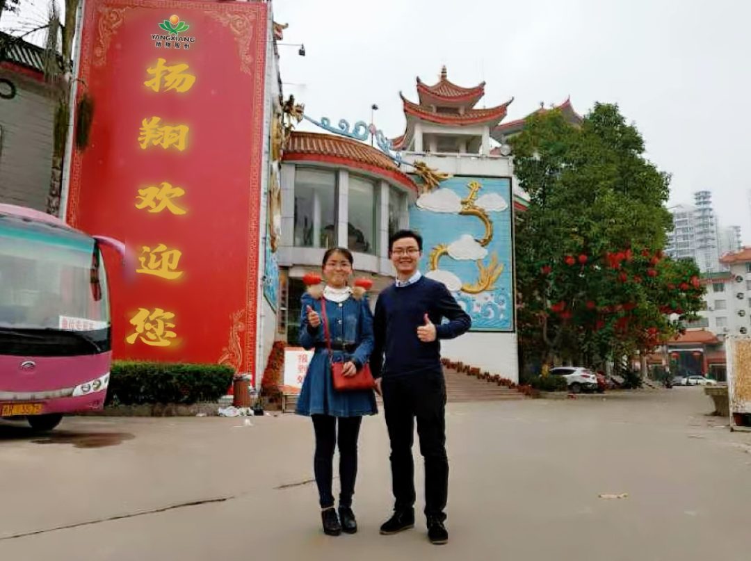 描述:这张照片是我刚跟扬翔合作时拍的。当时刚做扬翔饲料经销商,跟着工作人员上山下乡卖饲料,忙忙碌碌中留下了这张照片。一晃二十多年,我还在跟扬翔合作,每年的经销商大会也从没落下。从初入行时的并肩拓路,到如今的携手深耕,扬翔始终以稳定的品质、贴心的支持为我撑腰。
