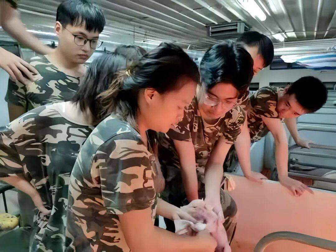 描述:教练现场指导接产技术,大家对刚出生的小猪满怀好奇,学习态度格外积极认真。