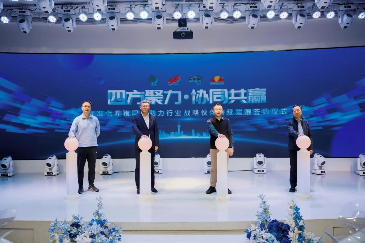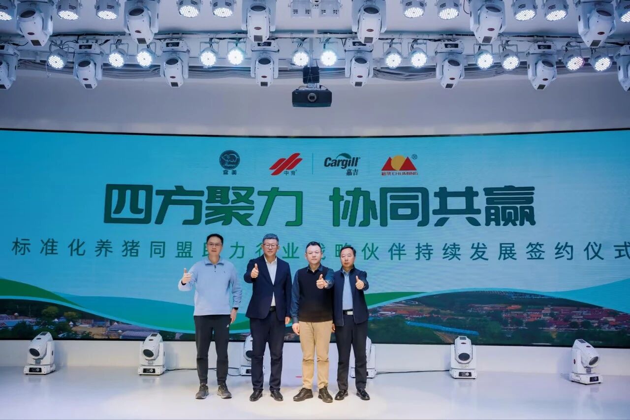 1月11日,由大连富美山庄有限公司、北京中育种猪有限责任公司、嘉吉饲料(抚顺)有限公司、大连成三农牧有限公司联合举办的“标准化养猪同盟助力行业战略伙伴持续发展签约仪式”在大连隆重举行。此次活动汇聚行业精英,共同探讨标准化养殖模式,旨在通过协同创新、资源整合,打造行业标杆,构建一个能够应对风险、提升效益的养猪新生态。