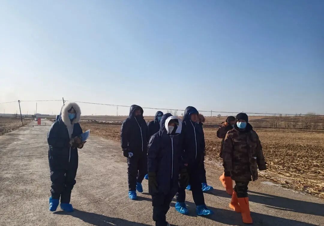 在零下28℃的极寒天气里,由于气温极低,每个人都得“全副武装”——穿上厚厚的棉服、戴上帽子。同时,为配合做好新冠肺炎防控工作,每个人还需严格佩戴口罩。之后,大家便前往各个猪场开展工作。