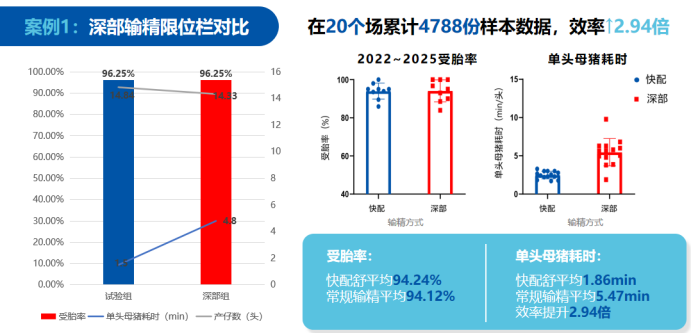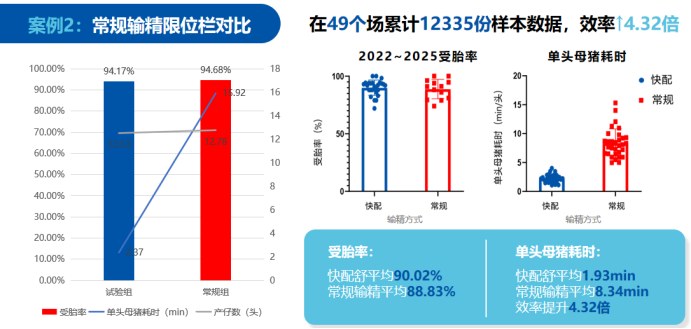 耗时对比:单头输精耗时缩短至传统方式的1/3;