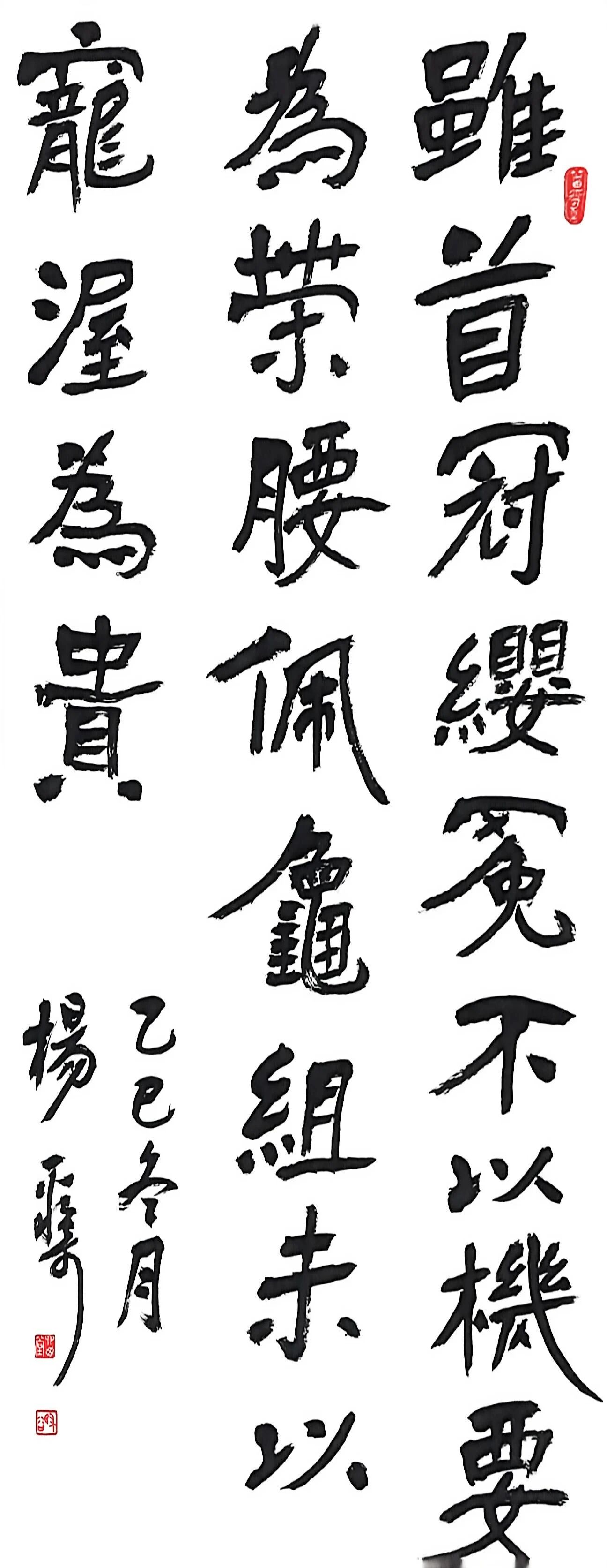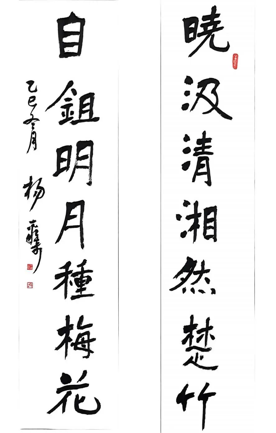 《中堂对联》尽显书法风骨,笔墨苍劲洒脱,笔画粗细错落间藏着气韵流动,联句章法严整又不失灵动,既见传统书法的功底,又融个人风格的意趣,是兼具法度与神韵的佳作。