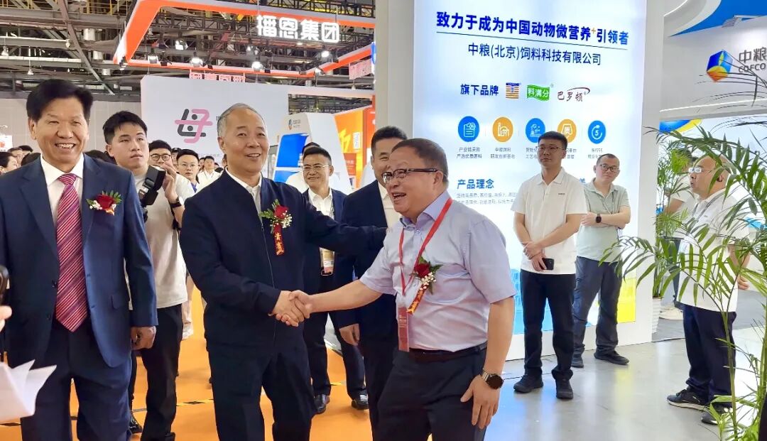 展会期间,农业农村部、中国饲料工业协会等领导亲临扬翔展台,详细了解扬翔集团布局全产业链发展的多项成果。扬翔集团副总裁高远飞陪同接待,对各位领导的到来表示热烈欢迎,并向各位领导详细介绍了集团近几年的发展情况。
