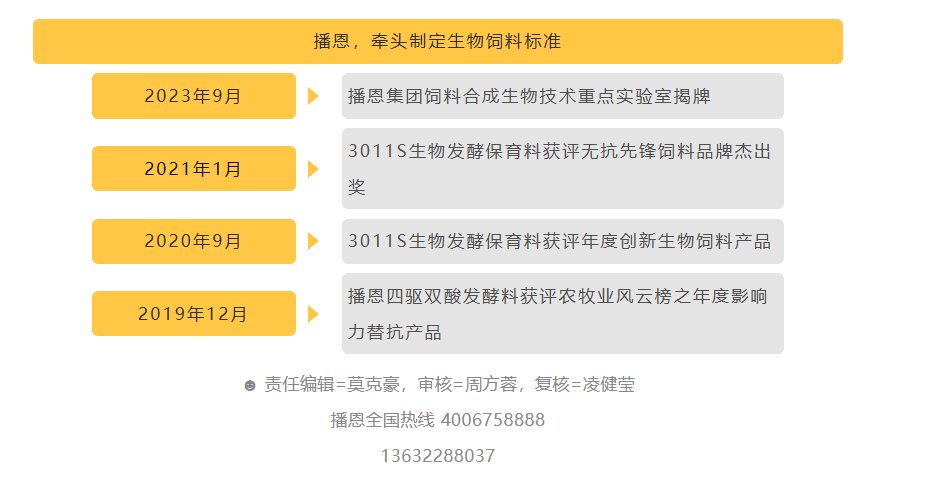 此次获奖彰显播恩在母仔一体化营养领域的行业价值与影响力。未来,播恩将坚守专业营养定位,以效能营养为核心,依托合成生物学等前沿技术迭代解决方案,践行“三不原则”与行业共生共赢,赋能养殖端,助力畜牧产业高质量发展。