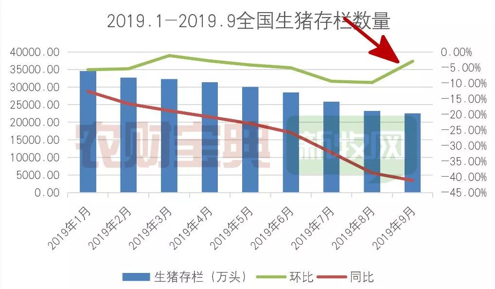 近日,农业农村部公布2019年9月份400个监测县生猪存栏信息,生猪存栏和能繁母猪存栏分别同比下降41%、38%。然而值得注意的是,9月生猪、母猪存栏降幅双双趋缓,环比降幅下降超6个点。