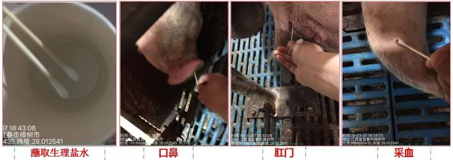2)疑似猪采样:采集口腔粘液、肛门拭子、静脉采血,实验室送检;