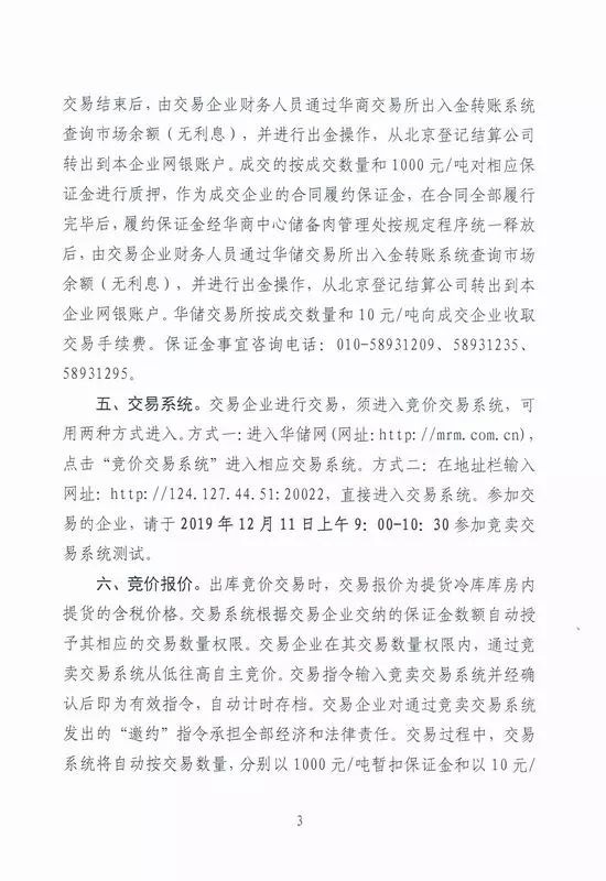 交易时间为2019年12月12日下午13:00-16:00.见价交易通过北京华商储备商品交易所(以下简称华储交易所)交易系统进行,交易底价按照国家有关部门文件要求进行设置。