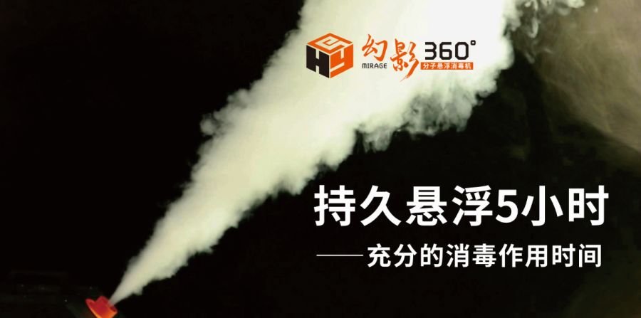 幻影360分子悬浮消毒机配合消毒剂及增效剂可以实现对细菌(包括芽孢)、支原体、病毒的有效杀灭,可持续杀毒时间长达5小时。